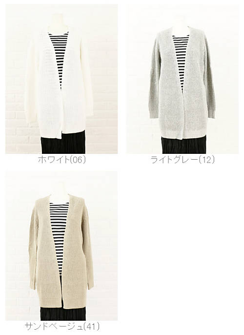 Rakuten International Shipping Item Details click here コード *U150219*【smtb-TK】【select-shop】【コンビニ受取対応商品】TRANNA(トラーナ) コットン オープン カーディガン98-7755 Item Images ※画像をクリックして拡大 Color Variation※クリックして拡大 ホワイト(06)ライトグレー(12)サンドベージュ(41) ブランド TRANNA(トラーナ) アイテム説明 コットンニットのロングカーディガンです。